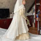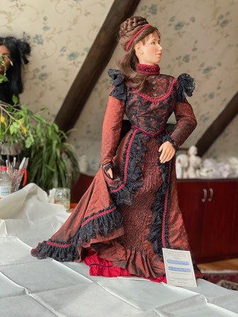 Bekleidung: eigene Fertigung. Kleid aus Seide und französischer Spitze. Oberteil in Bändchen-Stickerei.